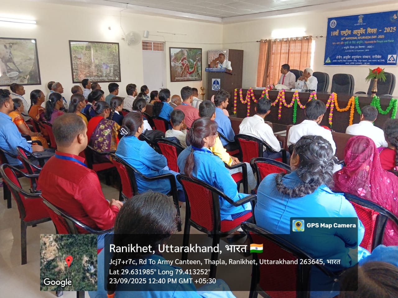 रानीखेत। क्षेत्रीय आयुर्वेद अनुसंधान संस्थान, रानीखेत में 10 वाँ आयुर्वेद दिवस – 2025 का आयोजन किया गया जिसमें मुख्य अतिथि के रूप श्री विनोद खुल्बे, प्रधानाचार्य, सिटी मॉन्टेसरी स्कूल, गनियाद्योली को आमंत्रित किया गया।