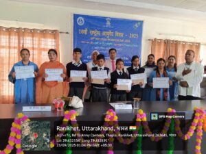 तत्पश्चात कार्यक्रम के नोडल अधिकारी डॉ. वी. बी. कुमावत, अनुसंधान अधिकारी (आयु.) द्वारा 10 वें आयुर्वेद दिवस – 2025 के अन्तर्गत आयोजित की गई गतिविधियों का संक्षिप्त प्रतिवेदन एवं राजकीय बालिका इण्टर कॉलेज, ताड़ीखेत में आयोजित रंगोली प्रतियोगिता, नेशनल इंटर कॉलेज, रानीखेत में आयोजित पोस्टर प्रतियोगिता एवं संस्थान में आयोजित आहार प्रतियोगिता के विजेताओं के बारे में बताया गया। साथ ही प्रतियोगिताओं के विजेता प्रतिभागियों को प्रमाण-पत्र एवं नकद पुरस्कार राशि प्रदान की गयी।