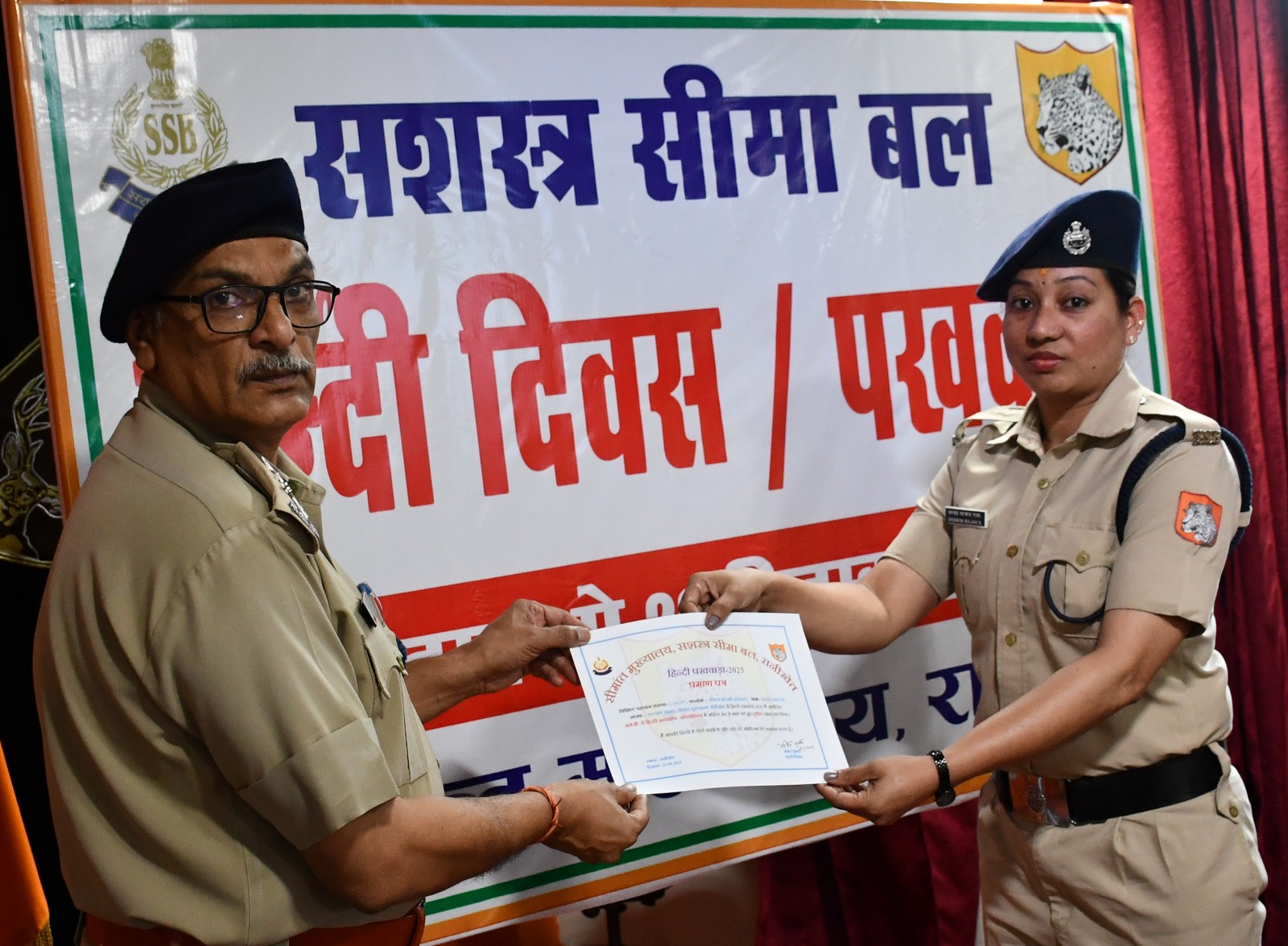 रानीखेत। भारत सरकार गृह मंत्रालय के तत्वाधान में व अमित कुमार, महानिरीक्षक सशस्त्र सीमा बल सीमान्त रानीखेत द्वारा 29 सितंबर, 2025 को हिन्दी पखवाड़ा का औपचारिक रूप से समापन किया गया ।